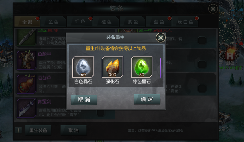 强化百分百成功,装备最高强化+12,同时会消耗一定的强化石和强化结晶。装备的强化好就好在玩家不需要担心强化低品质的装备会浪费材料,游戏中可以重生装备,无条件返还所有的强化素材,非常的方便。