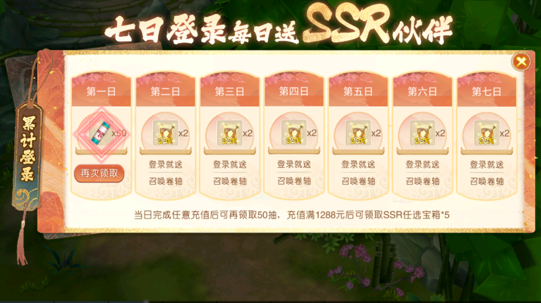 1、登录就送召唤卷轴,SSR伙伴拿到手软