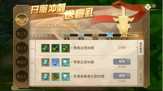 4、每日签到、冲级赠礼,顶级神兵,万元充值送不停