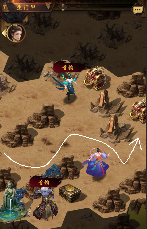 按照顺序:马面1→马面2→首领孙悟空→雪妖→直接到宝箱领取(中间不能打其他任意npc)