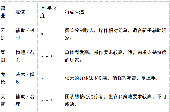 选择你心仪的职业,开启你的冒险之旅:
