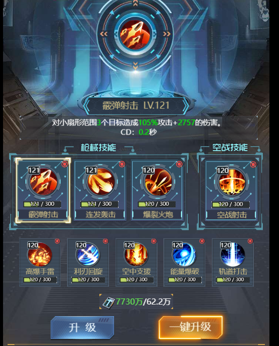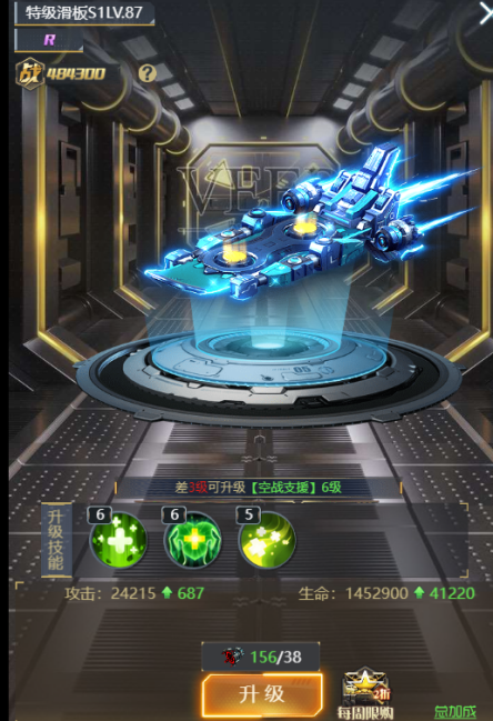 ④ 【升级】:消耗飞行器配件提升飞行器的培养等级,等级越高给主角增加的属性越多,培养等级提升还能激活及提升培养技能等级。