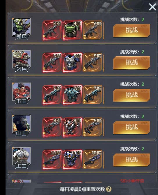 ② 挑战的前提是需要闯关达到一定的关卡才能进行挑战。