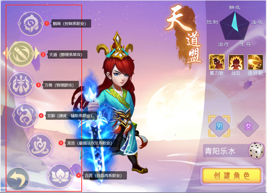 1、创建角色,职业选择。
