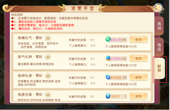 献祭每天所需的材料各不相同,届时可能你的背包会有所需的材料,不要担心,把游戏内能领取的福利全部领取完,届时你会发现不知不觉就会有对应的材料了。能完成所有的献祭活动,你的等级肯定能达到220级往上。220级之后还是需要点击角色飞升突破升级上限。流程还是按上面说的
