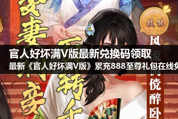 官人好坏满V版兑换码在哪里?《官人好坏满V版》一款创新的经营养成官斗手游,游戏以当官第一视觉生动呈现,游历寻访、历史关卡、培养门客、衙门辩论 、酒宴社交等精彩玩法,提升个人实力,成为朝廷重臣,为国效力。通过游戏,能够让玩家在网络上展示自己的多面性,同时也能够培养玩家对国家大事的关注度。,我猜很多玩家都还不知道官人好坏满V版这款游戏是可有些非公开的兑换码可供领取的,这些兑换码在游戏中是可以直接使用的,领取各种珍贵资源,98游戏这次就为小伙伴们整理了最新《官人好坏满V版》累充888至尊礼包大全!快跟着小编一起看看吧。