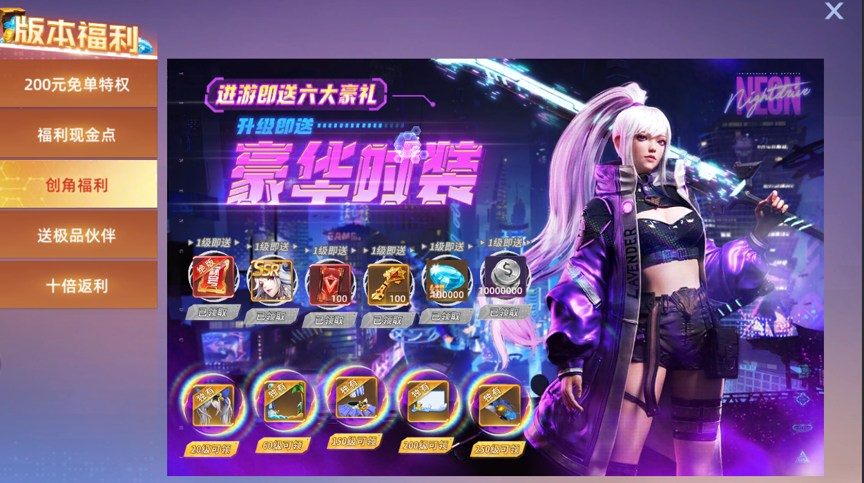 3、创角升级免费获得夏日套装