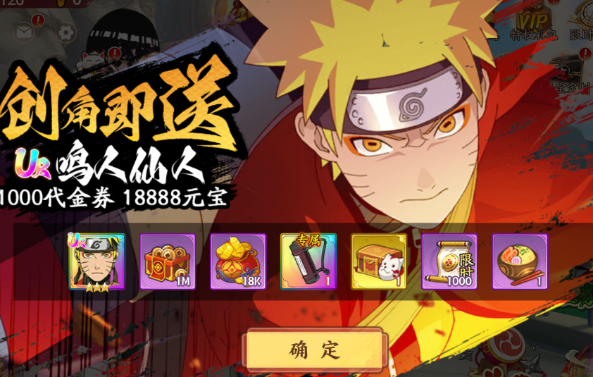 ①.首充礼包购买即可获得UR鸣人(仙人),大量抽卡卷轴助您再忍者之路上畅通无阻!