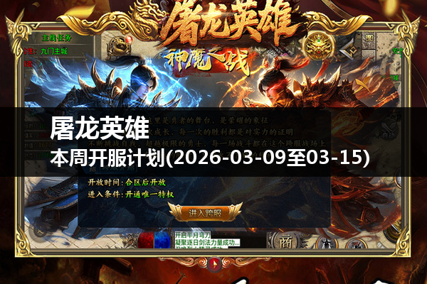 | 屠龙英雄(专属神器爆爆爆) | 寻龙20区 | 安卓端 | 2026-03-09 20:00 |