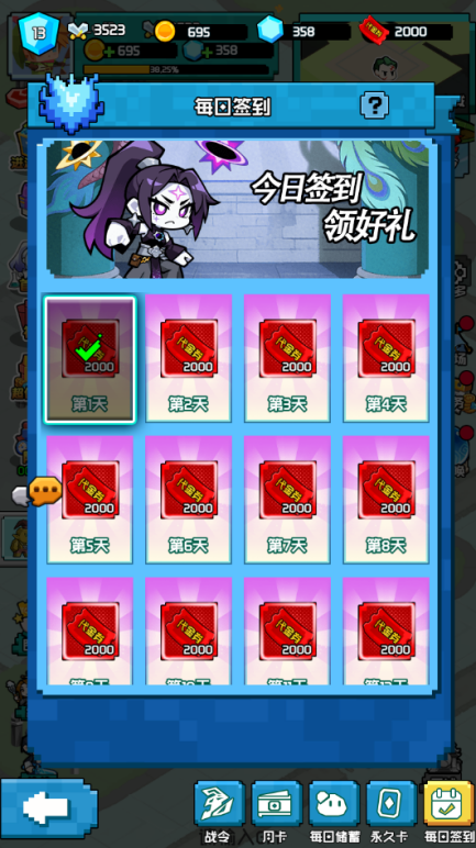 2. 每日签到领 2000不限时代金券,超值礼包随心购