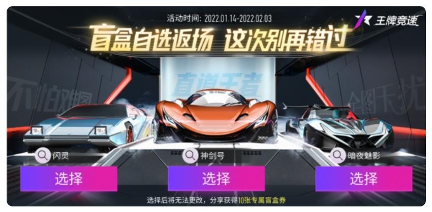 三个赛季的精华再次集结,等你征召!本次半年庆大返场活动中,车手们在时光商店进行十连抽即可享9折优惠,三选一自选盲盒确定后,更可立即获得10张专属盲盒券,有机会抽中丰厚奖励!