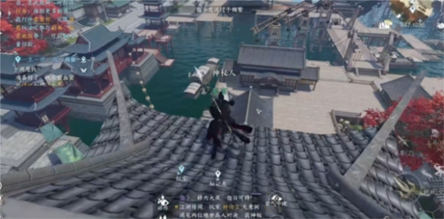 2、随后跳上房屋,找到房子上的神秘人点击进行对话。