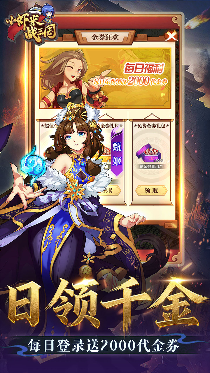 《小虾米战三国》是一款水墨国风放置卡牌手游,0.1折超值首发即送2000元真充代金券,轻松开局不肝不氪,在茶香墨韵间执笔点将、运筹三国!