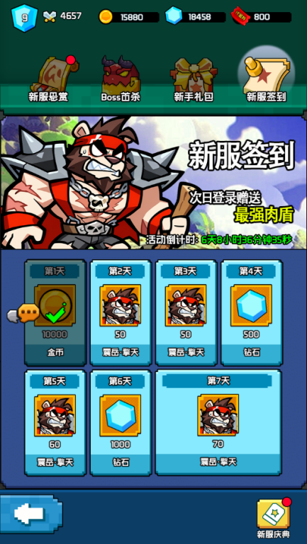 1.开局领取创角福利,登录送橙卡+海量钻石+50连抽+图鉴卡