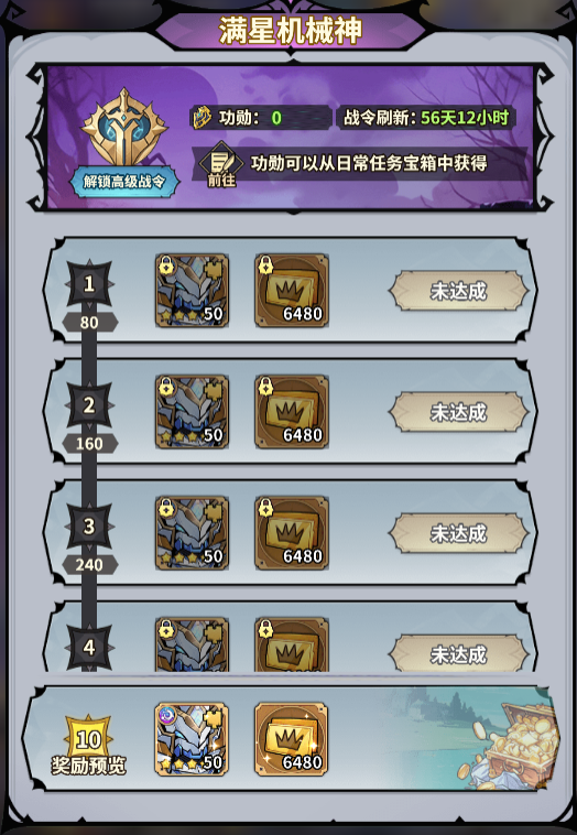 玩家累计在线可获得9星超神英雄机械神,玩家通过1-20关卡后,每日登录即可领取6480不限时可拆分代金券。激活战令激活战令,完成每日活跃任务,再获6480代金券