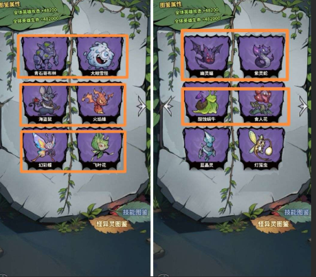 变异:图鉴前五排的怪异灵两两融合,概率发生变异,请见第一张图所框的。