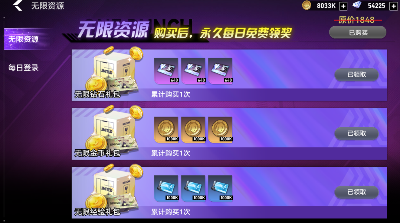 2、永久特权:唯一永久特权 天天爆抽到爽