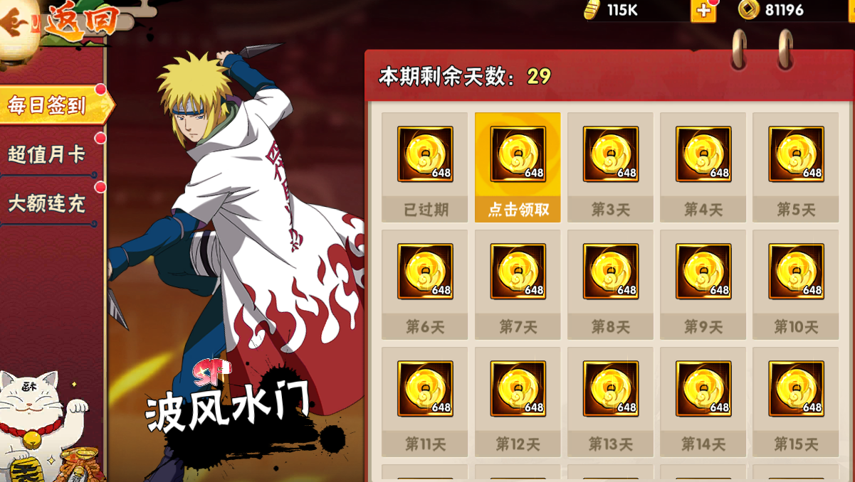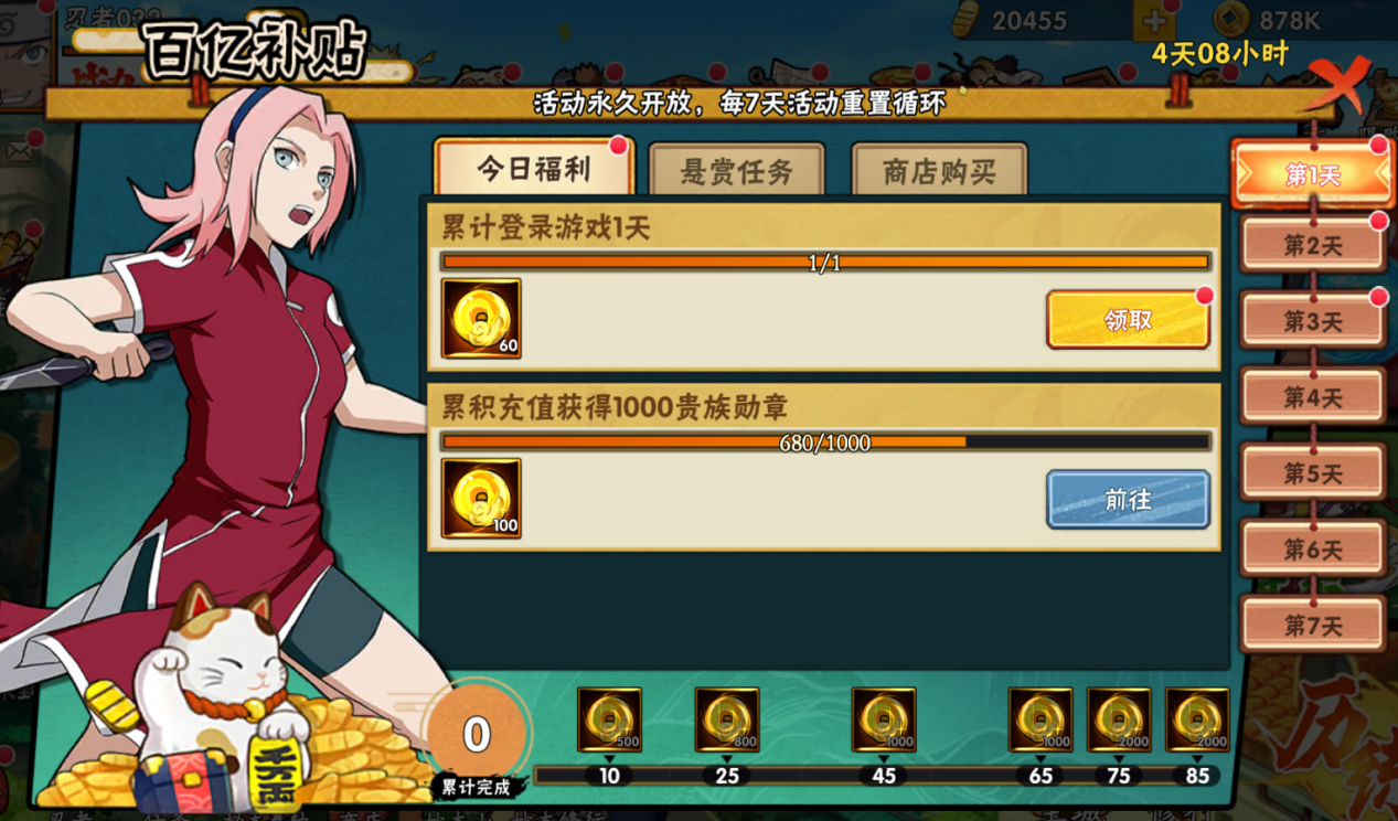 三天首充,直接拉满,SP忍者、培养材料等奖励多多